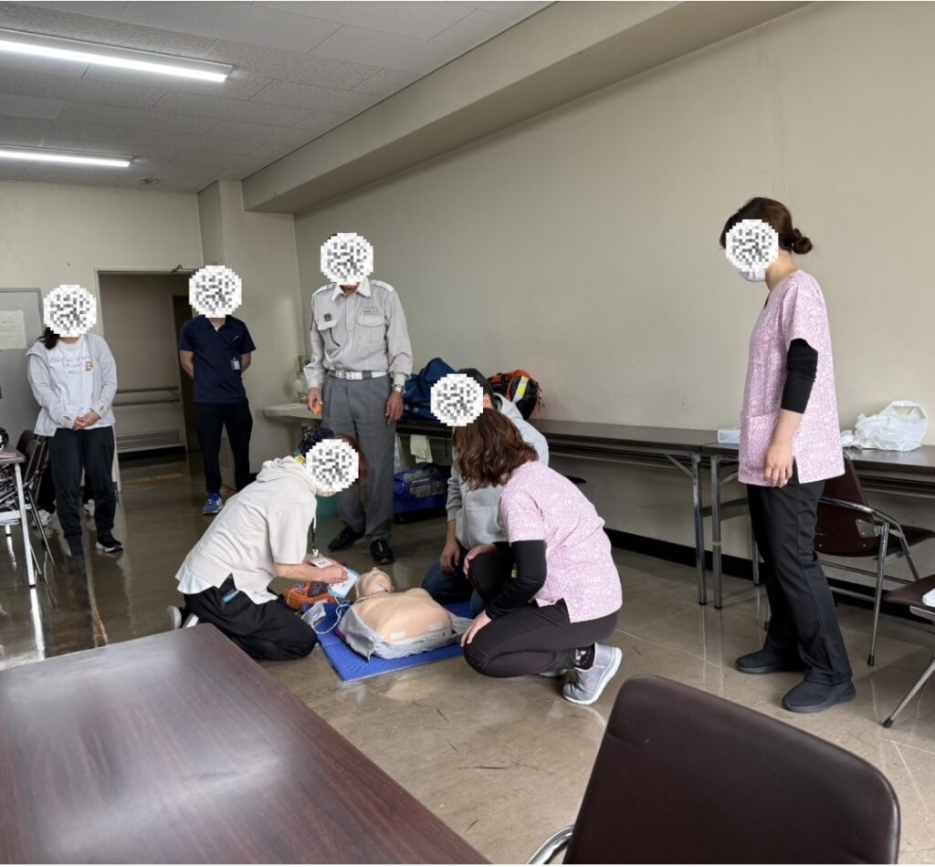 当日は、救急救命の講師の方にもお越しいただき、心肺蘇生法やAEDの使い方などを実践的に学びました。