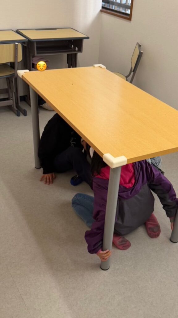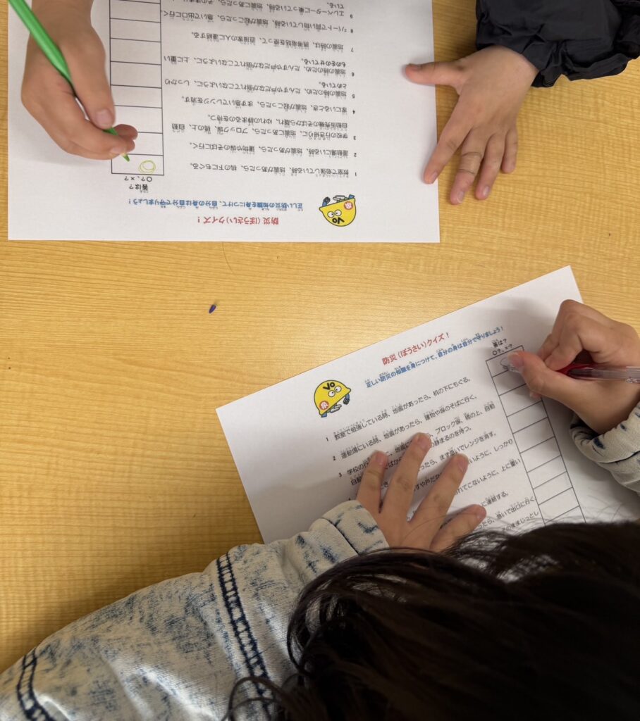 地震や災害が起きた際の行動や防災クイズを活用し、地震が起きた時にどうすれば正しいのか、みんなで協力して取り組みました👍👍