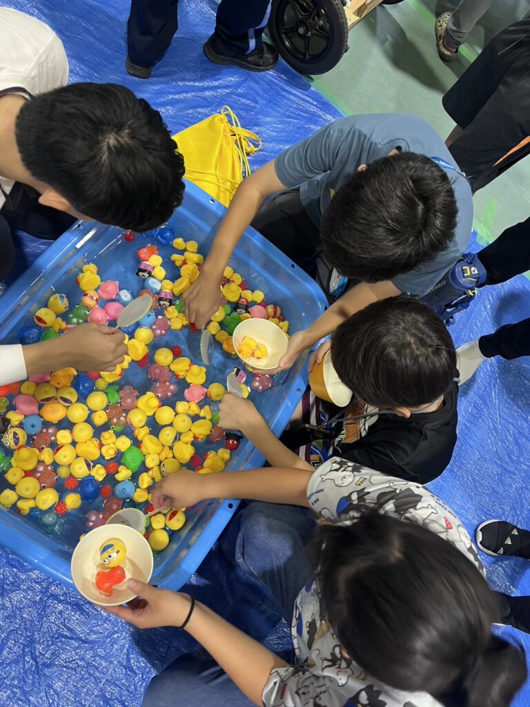 アヒルすくいや輪投げ、コイン落としにくじ引きなど、子どもたちは笑顔いっぱい😊